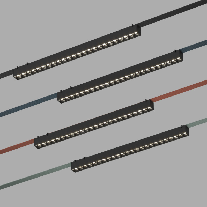DK5573-BK Cветильник для трека-ремня Belty, серия Grill, со светодиодом, L642*W40*H45мм, 48V DC, 24W, RA90, 24°, 3000K, IP20, черный, алюминий