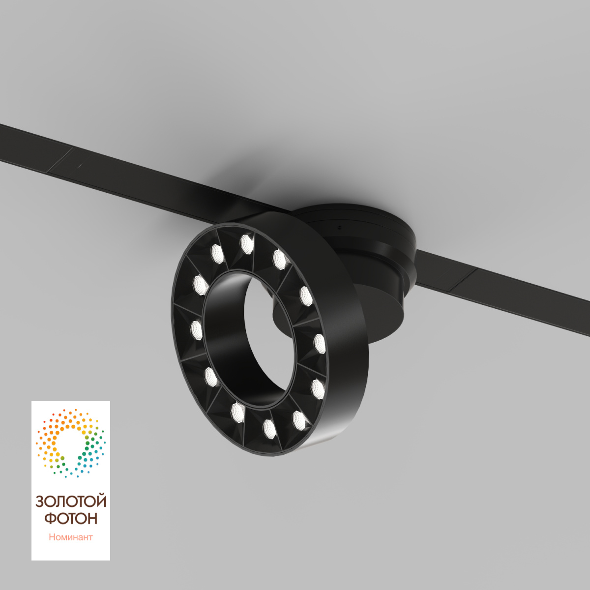 \"Умный трековый светильник для акцентного освещения. Имеет форму поворотного кольца. Свет можно направить вертикально вниз, параллельно плоскости потолка или наклонить под нужным углом. Светодиоды Bridgelux с высоким индексом цветопередачи CRI>90. Удобный и надежный монтаж в трек DENKIRS SMART с помощью механических защелок. Отражатель из черного пластика увеличивает светоотдачу. Утопленные светодиоды исключают блики. Изменяемая яркость и цветовая температура 3000-6000K. Дистанционное управление при помощи приложения, панели, пульта и голосового помощника. \n\"