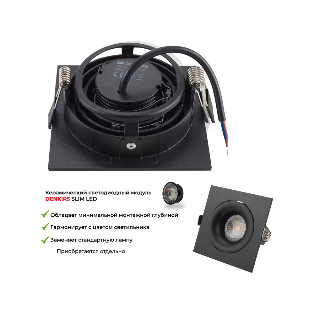 Серия встраиваемых поворотных светильников под сменную лампу. Предназначены для акцентного освещения. Имеют лаконичный дизайн и продвинутую систему регулировки направления света, обеспечивающую наклон лампы в двух плоскостях. Идеальны для прихожей, гостиной. Подходят для всех типов натяжных потолков. Простая система установки не требует высокой квалификации монтажника. Лампа в комплект не входит. Для данной серии рекомендуем ультратонкие модули SLIM LED в качестве источника света, монтажная глубина всего 40 мм.Глубина встраиваемой части с лампой GU10 (патрон входит в комплект): 80 мм. Высота лампы 54 мм. Глубина встраиваемой части с модулем DK3000/DK4000: 40мм.