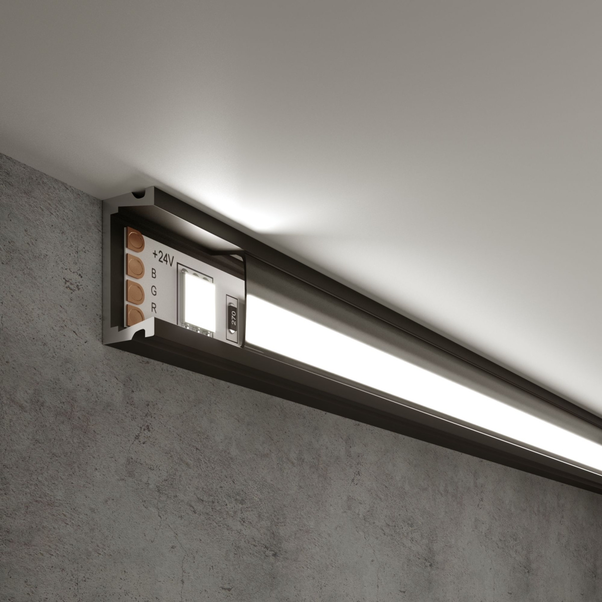 Профиль можно встраивать в пол, потолок или стены, создавая уникальные световые инсталляции. Пространство во внутренней полости профиля-основания используется в качестве кабель-канала для провода низковольтного электрооборудования.