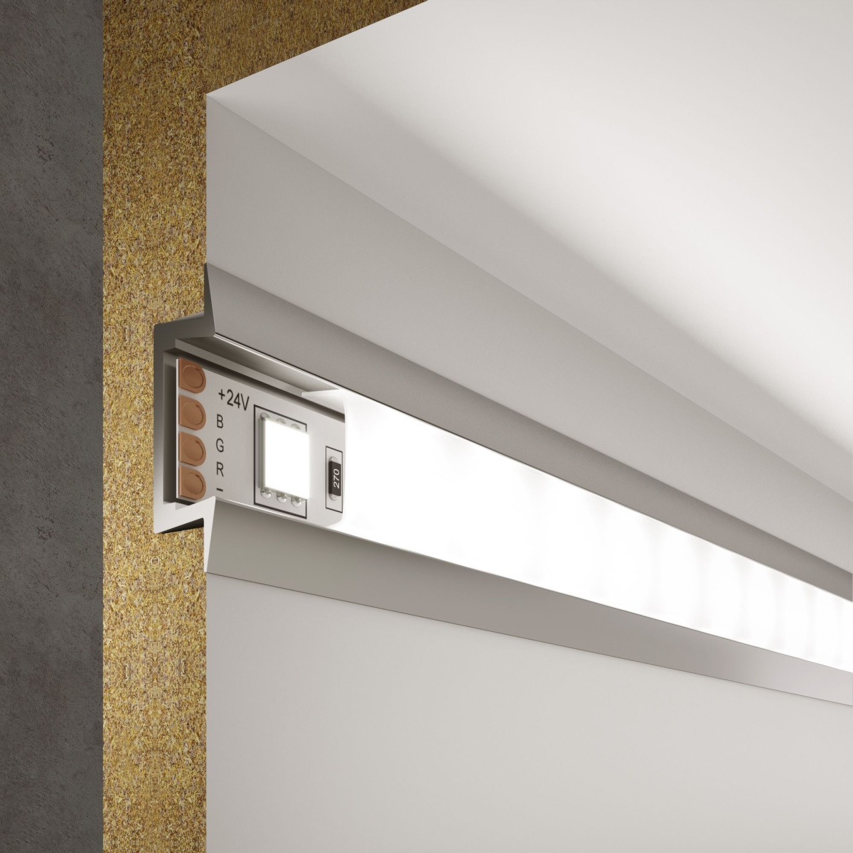 Профиль можно встраивать в пол, потолок или стены, создавая уникальные световые инсталляции. Пространство во внутренней полости профиля-основания используется в качестве кабель-канала для провода низковольтного электрооборудования.