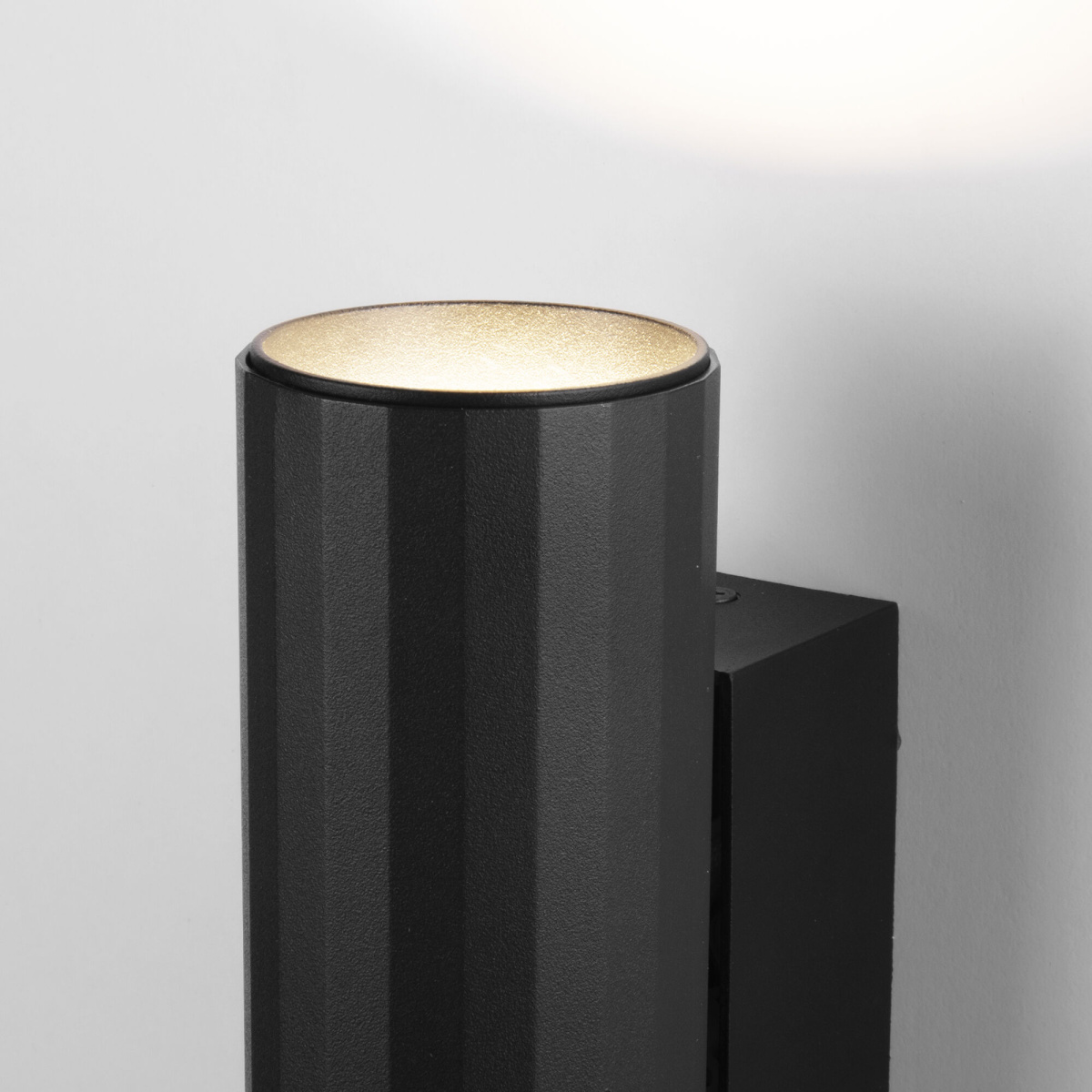 Настенный светильник в современном стиле Ribs GU10 Черный создаст качественное дополнительное освещение и станет эффектным дополнением к основному источнику света. Светильник создает мягкое равномерное свечение, подходящее для комфортного чтения книг в вечернее время. В качестве источника света используются сменные лампы с цоколем GU10.