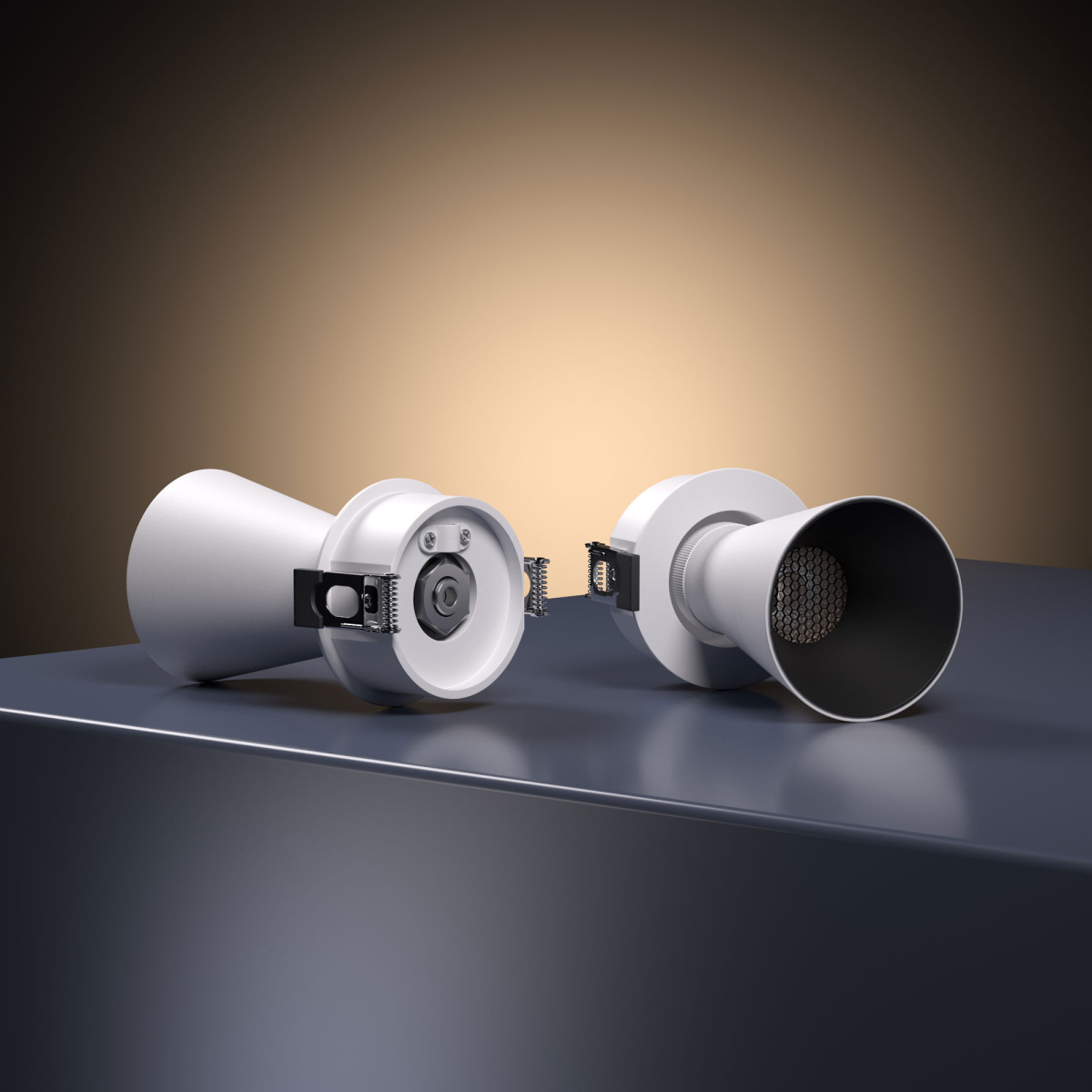 Коллекция Bell — уникальное световое решение, которое идеально впишется в любой интерьер. Встроенный акцентный светильник оснащен поворотным механизмом, позволяющим регулировать направление света. Это делает его незаменимым инструментом для создания выразительных световых акцентов в помещении. Плафон светильника имеет необычную конусовидную форму, которая придает интерьеру дополнительную декоративность и обеспечивает направленное освещение с углом рассеивания 30°. Светильник может использоваться для акцентной подсветки картин, скульптур, полок, растений и других элементов декора.