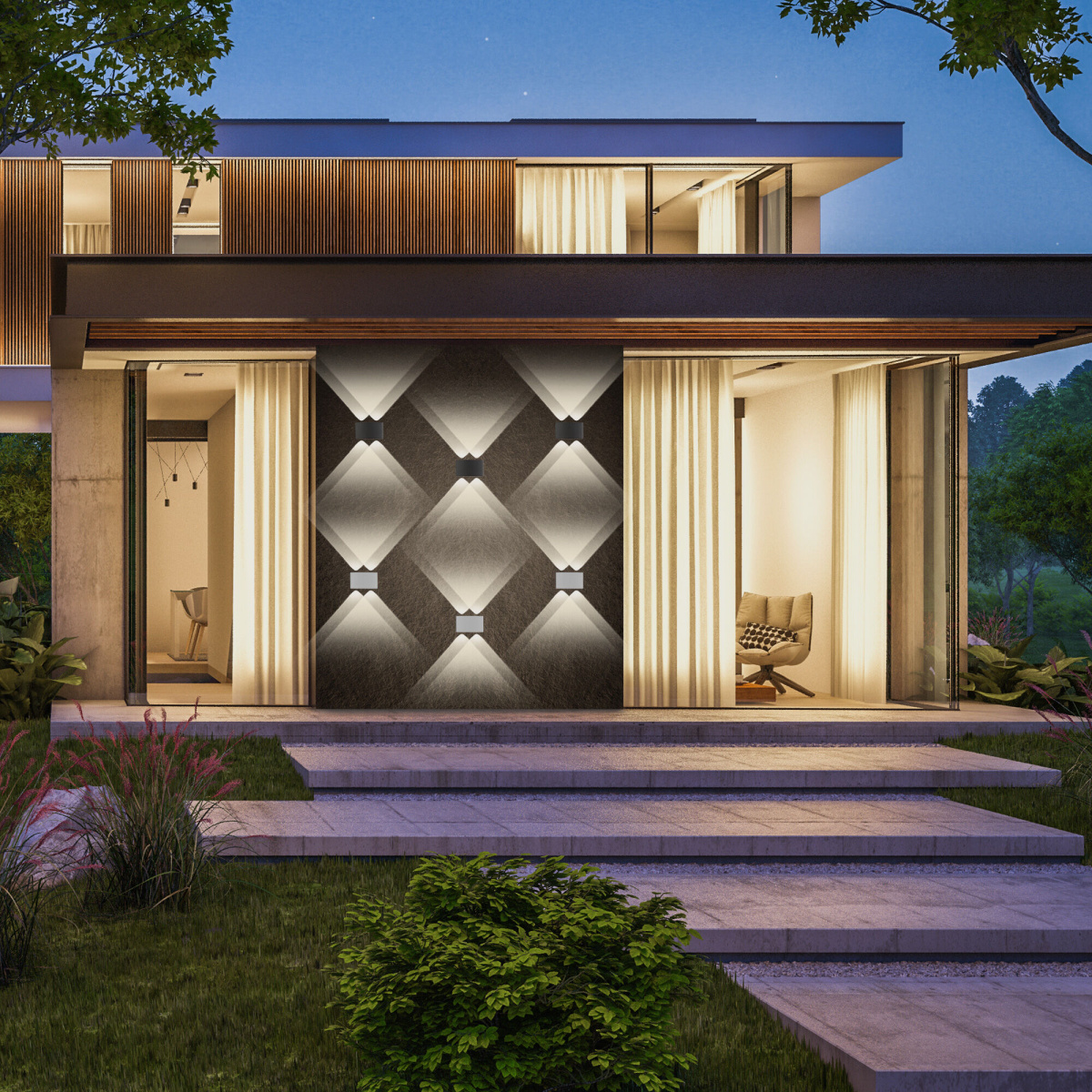 Настенный светодиодный светильник TWINKY DOUBLE белого цвета преобразит внешний вид как экстерьера дома, так и современного интерьера. Четыре встроенных источника света формируют уникальный двусторонний световой рисунок на поверхности, притягивающий к себе внимание.