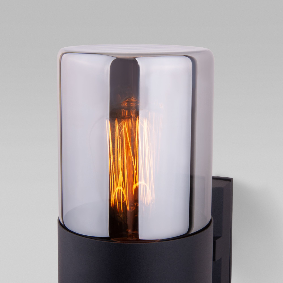 Настенный черный светильник Roil станет удачным решением как для уличного освещения, так и отлично подойдет в интерьеры стилей техно, минимализм и лофт. Зеркальный плафон дымчатого цвета из стекла с гальваническим покрытием особенно выразительно смотрится в сочетании с оригинальной лампой Эдисона в ретро-стиле или филаментной лампой с теплым свечением. Такая комбинация наполнит пространство приятным мягким светом и создаст необходимую атмосферу уюта. Степень пылевлагозащиты IP54.