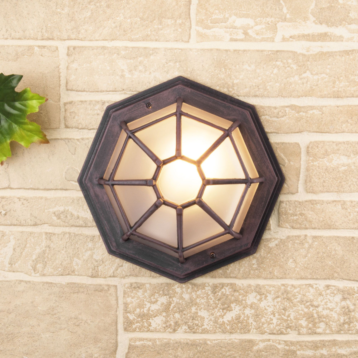 Настенный уличный светильник Telarana S- представитель уютного стиля кантри. Спокойный дизайн в приятном коричневом цвете. Матовый стеклянный рассеиватель формирует комфортный световой поток.