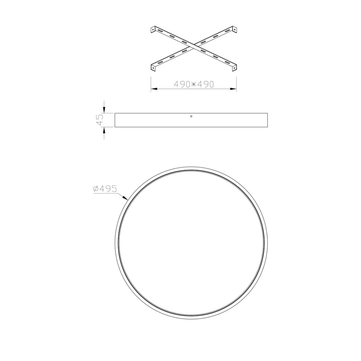 Размеры потолочной чаши (ДхШхВ), мм D490 (длина планки 485 мм)