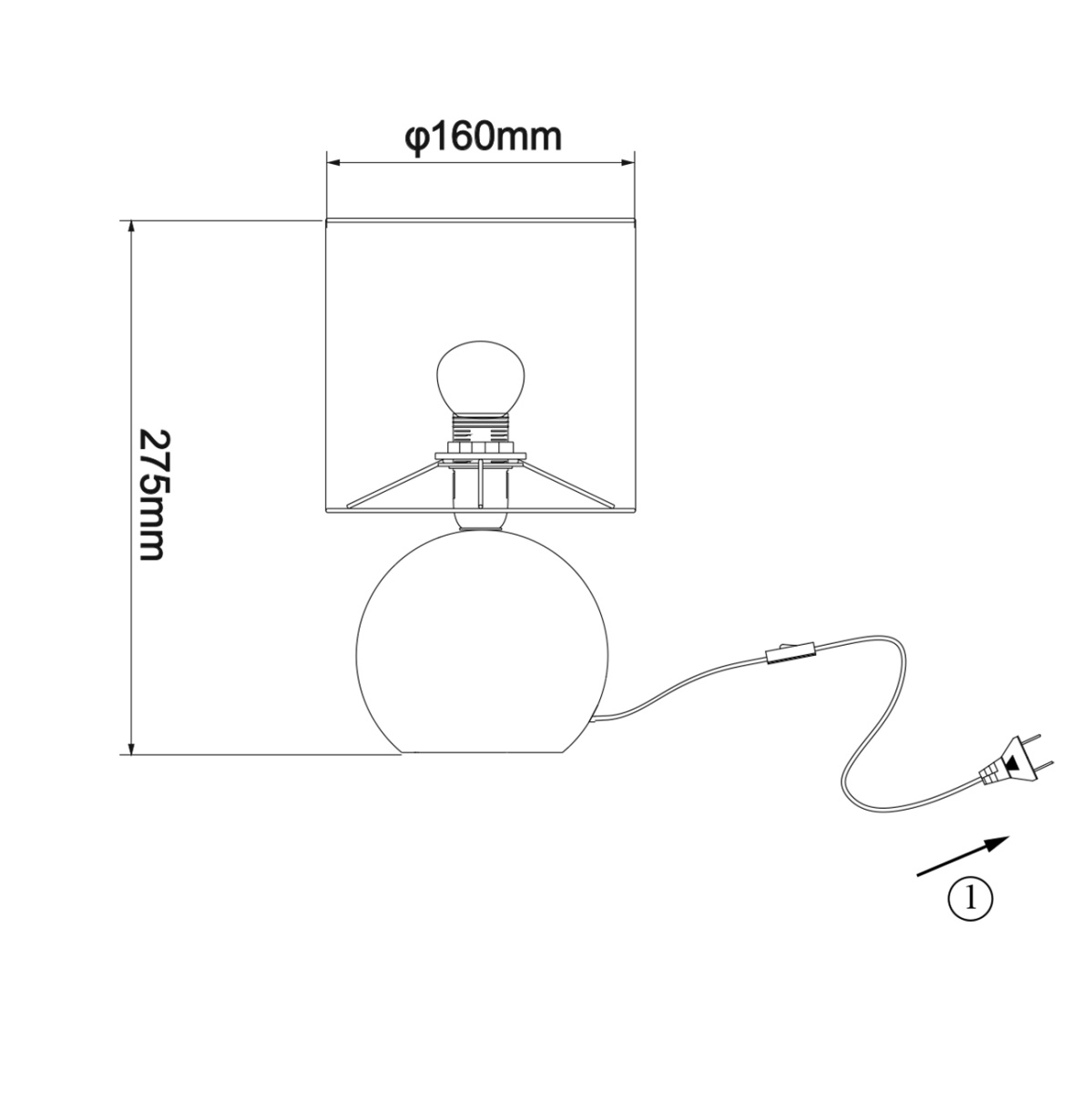 Размер плафона, (ДхШхВ), мм D160xh155