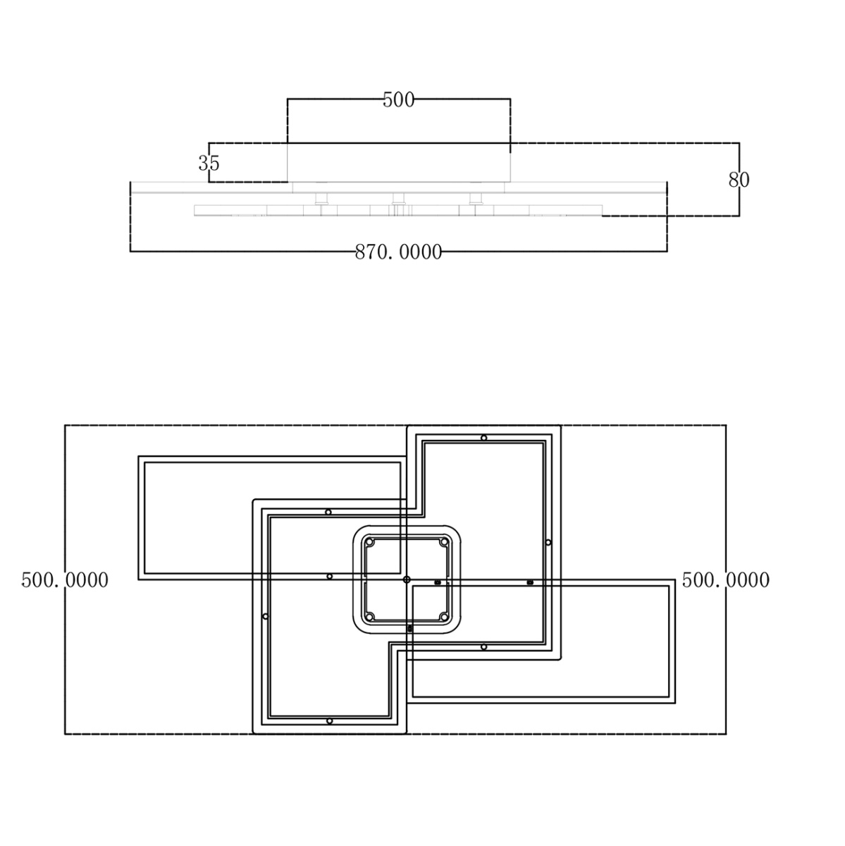 Размеры потолочной чаши (ДхШхВ), мм 445x445x35