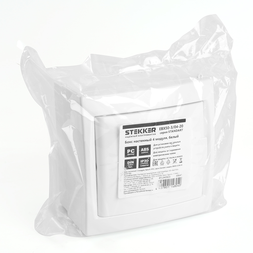 Бокс настенный STEKKER EBX50-3/04-20 4 модуля, белый, пластик, серия ArcaClass
