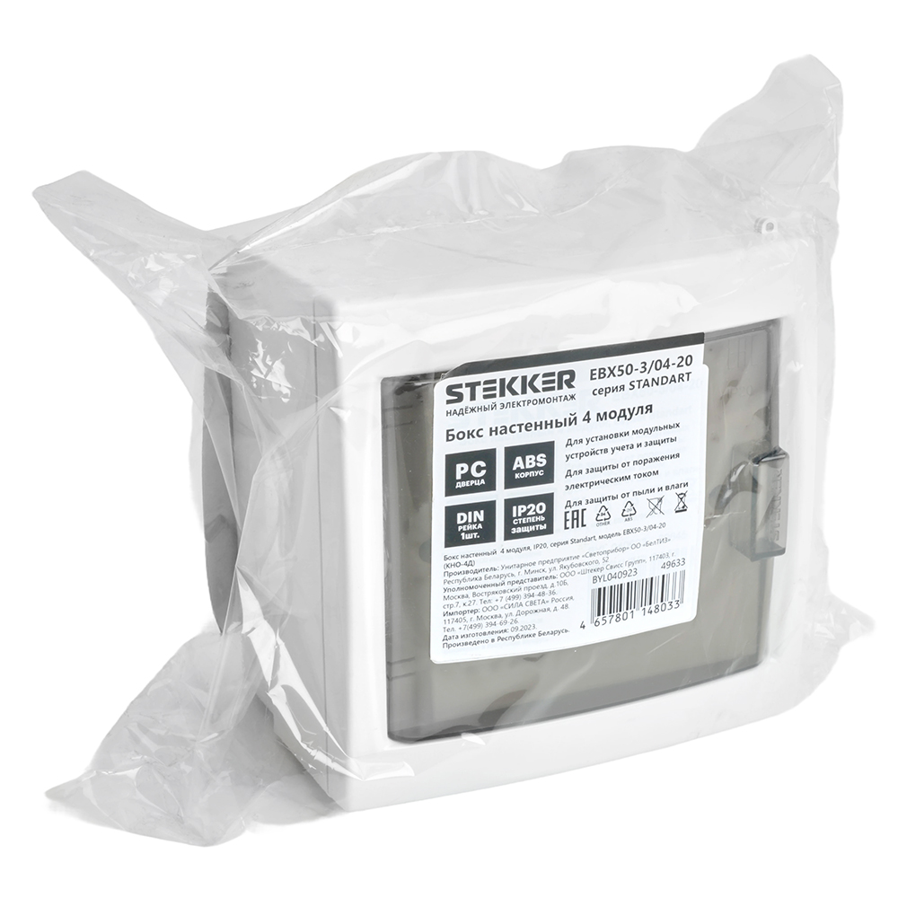 Бокс настенный STEKKER EBX50-3/04-20 4 модуля, пластик, серия ArcaClass