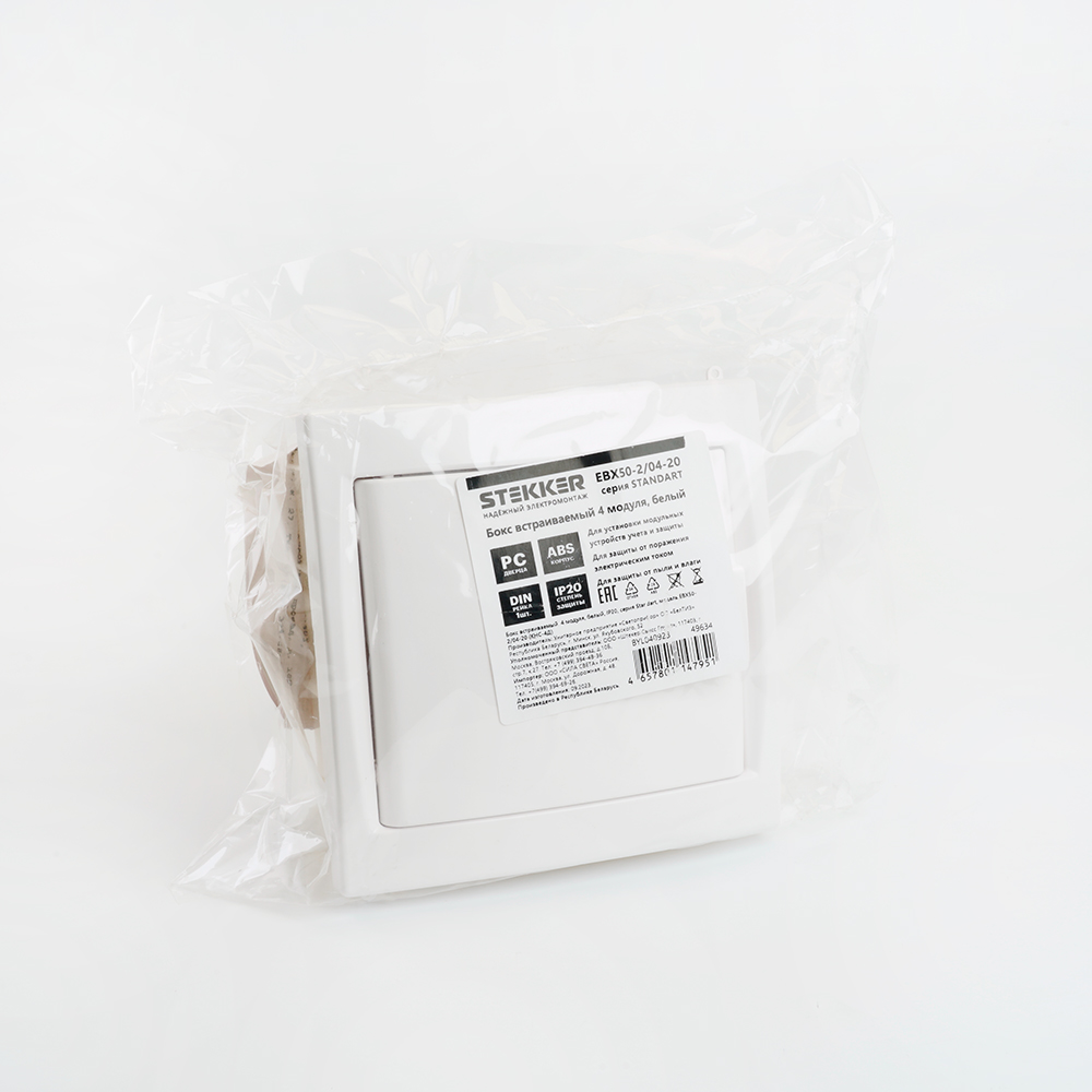 Бокс встраиваемый STEKKER EBX50-2/04-20 4 модуля, белый, пластик, серия ArcaClass