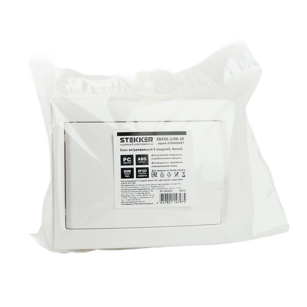 Бокс встраиваемый STEKKER EBX50-2/06-20 6 модулей, белый, пластик, серия ArcaClass