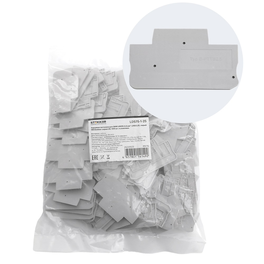 Торцевая заглушка для ЗНИ LD575 2,5 мм² (JXB PT 2,5), серый LD575-1-25