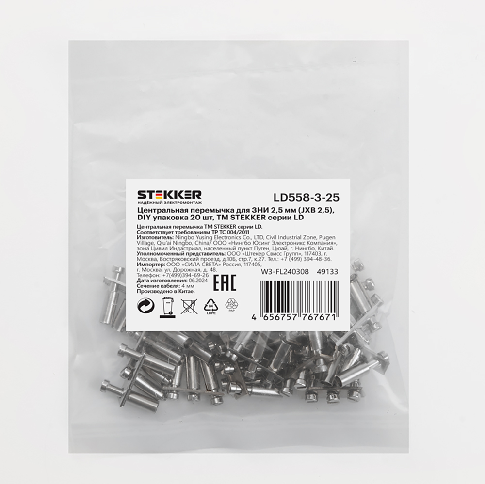 Центральная перемычка для ЗНИ 2,5 мм (JXB 2,5) 3PIN LD558-3-25, STEKKER (DIY упаковка 20 шт)