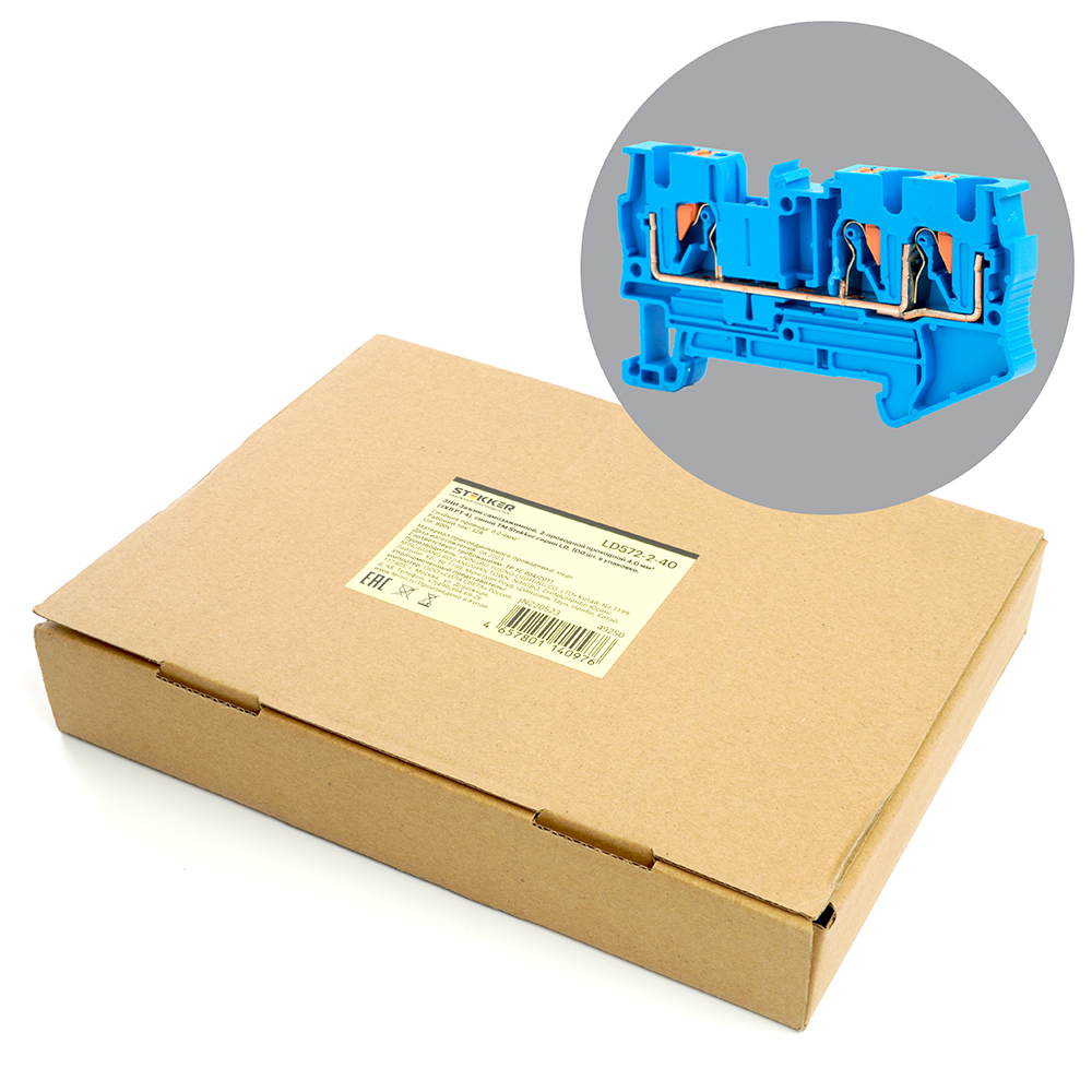 LD572-2-40 ЗНИ Зажим самозажимной, 2-проводной проходной 4,0 мм² (JXB PT 4), синий