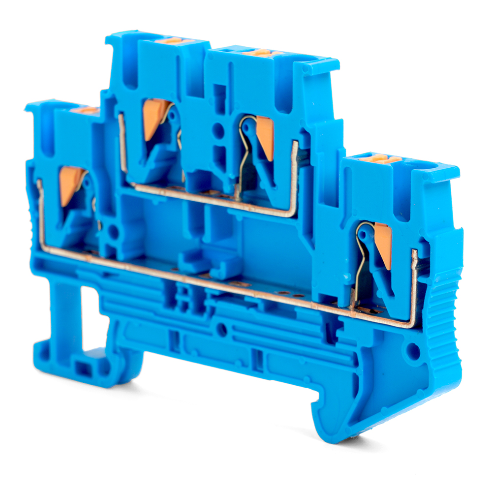 Зажим пружинный, 4-проводной проходной 2 уровня ЗНИ - 2,5 ,JXB PT 2,5 , синий LD575-2-25