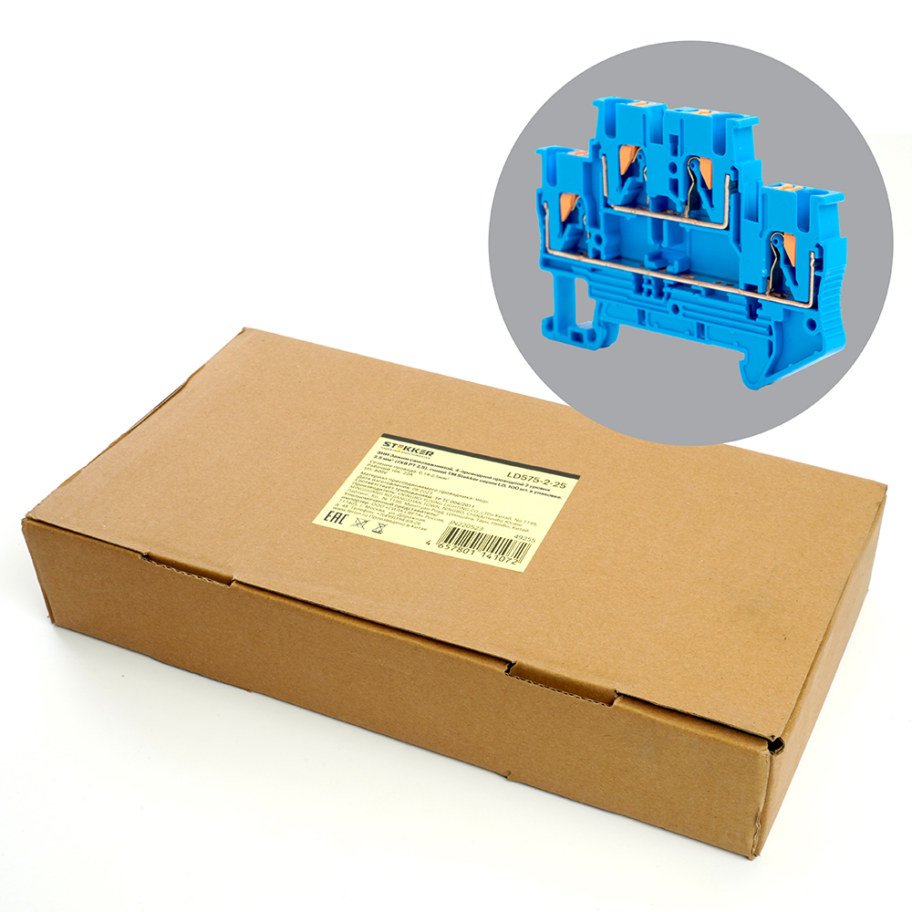 LD575-2-25 ЗНИ Зажим самозажимной, 4-проводной проходной 2 уровня 2,5 мм² (JXB PT 2,5), синий