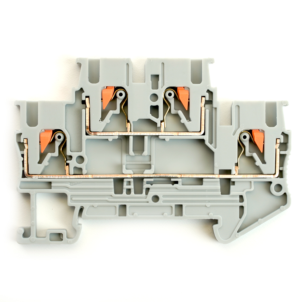 Зажим пружинный, 4-проводной проходной ЗНИ - 2,5 ,JXB PT 2,5 , серый LD575-1-25
