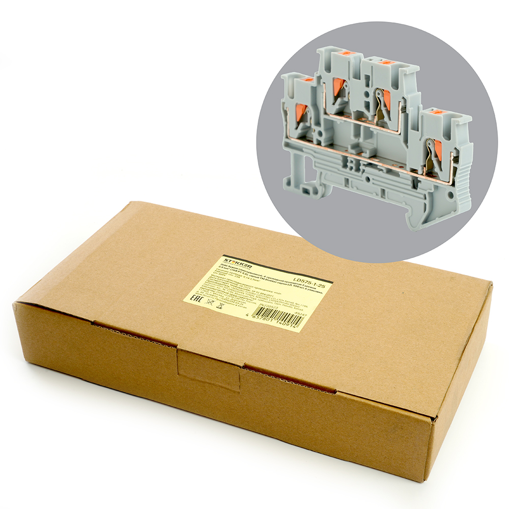 LD575-1-25 ЗНИ Зажим самозажимной, 4-проводной проходной 2 уровня 2,5 мм² (JXB PT 2,5), серый