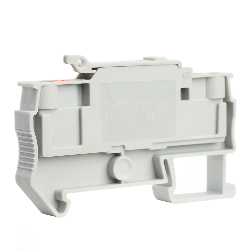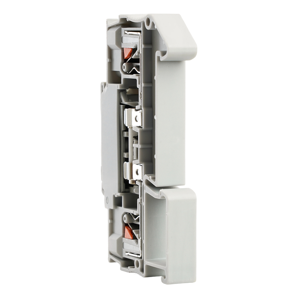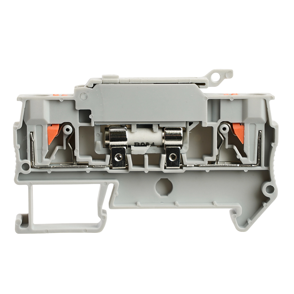 Зажим самозажимной STEKKER, 2-проводной проходной 4,0 мм² (JXB PT 4) c размыкателем и предохранителем, LD572-1-01, серый