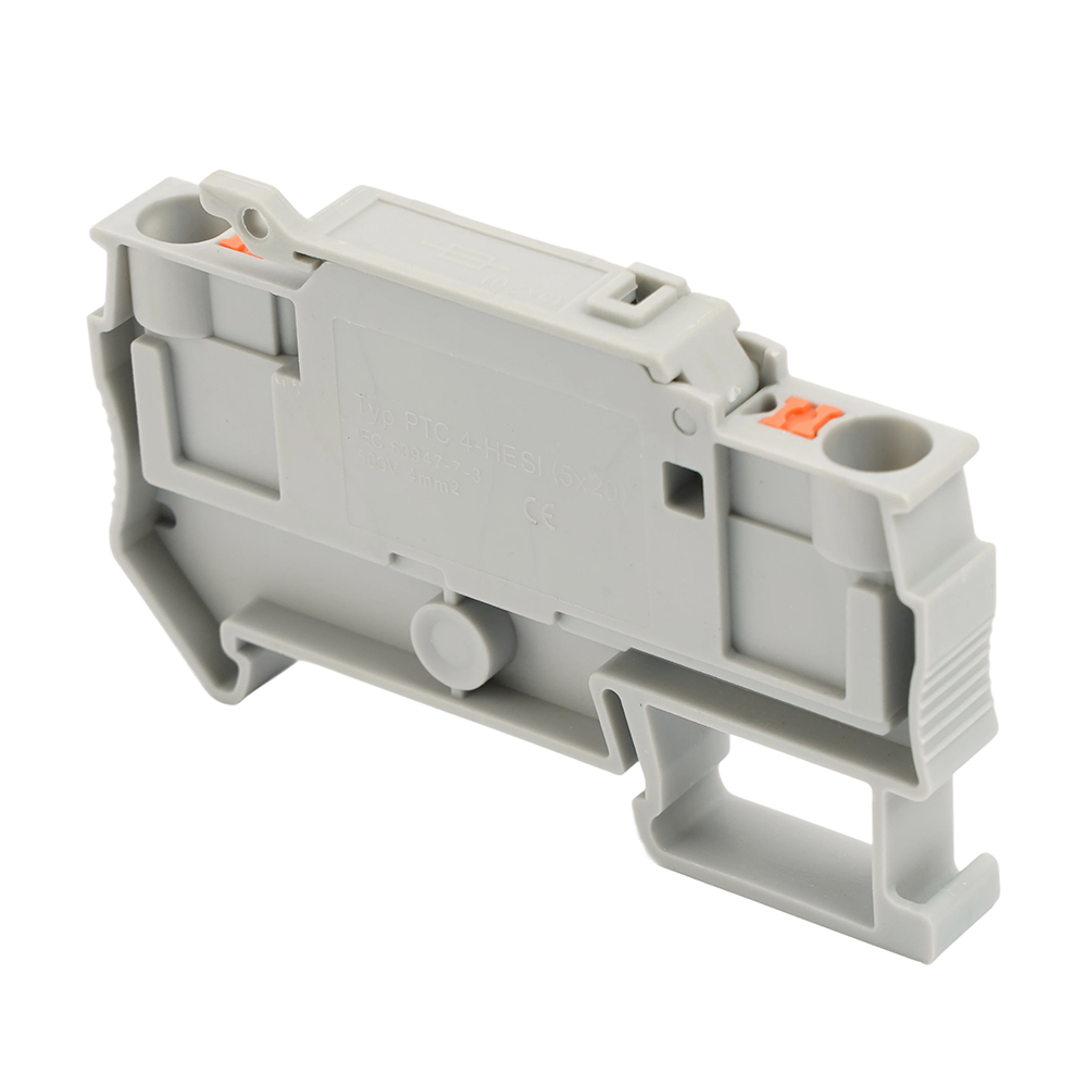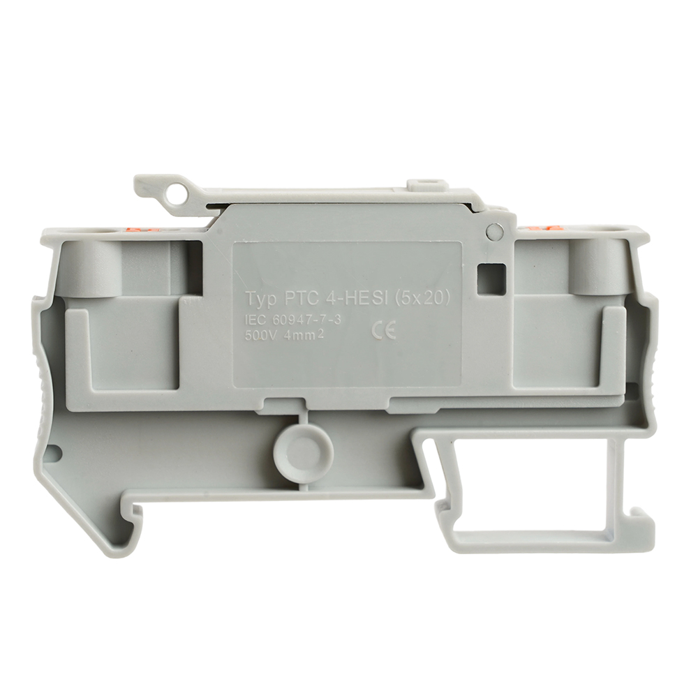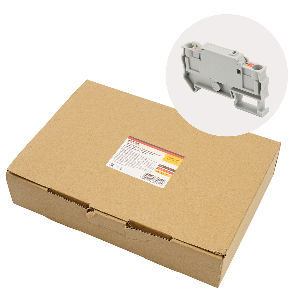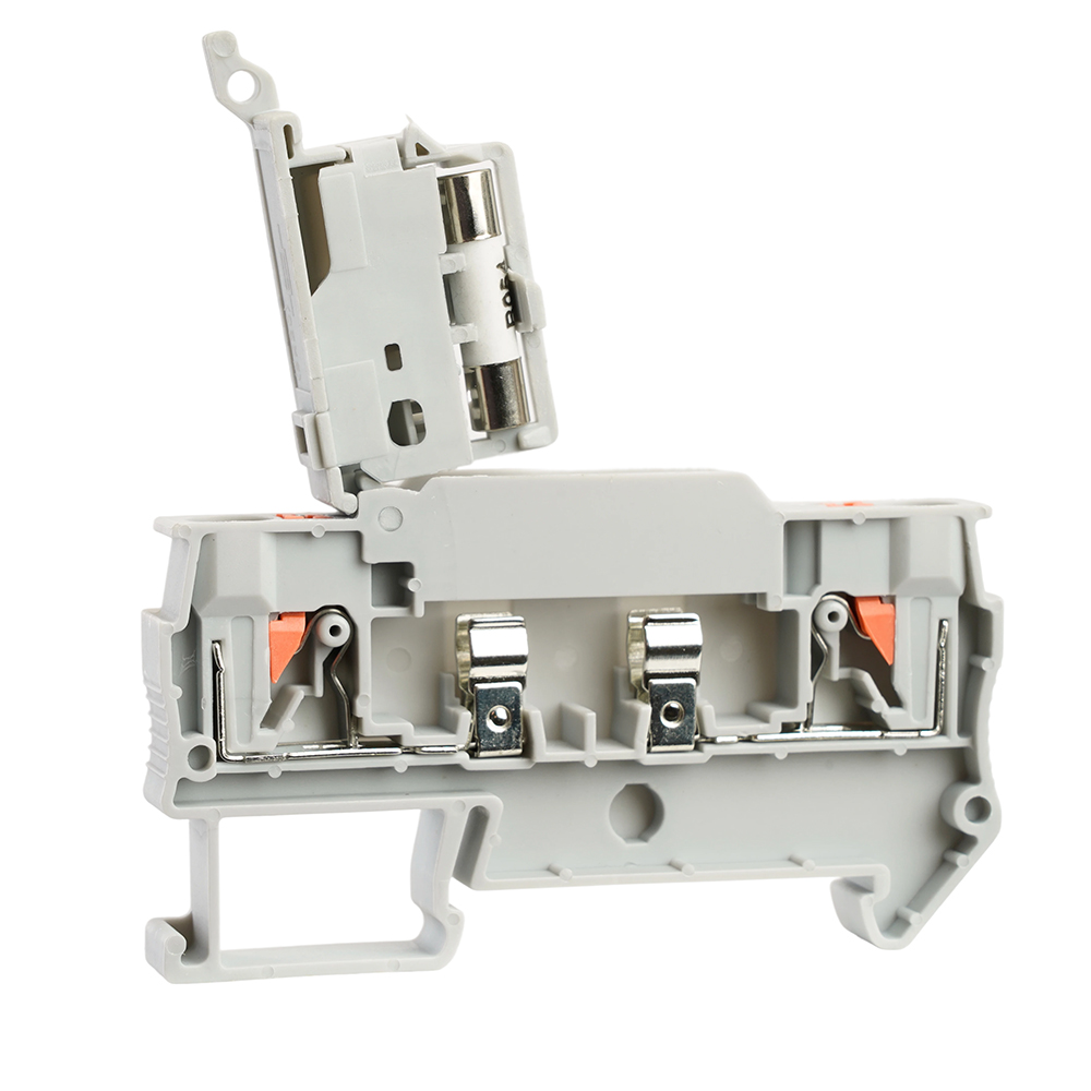 Зажим самозажимной STEKKER, 2-проводной проходной 4,0 мм² (JXB PT 4) c размыкателем и предохранителем, LD572-1-01, серый