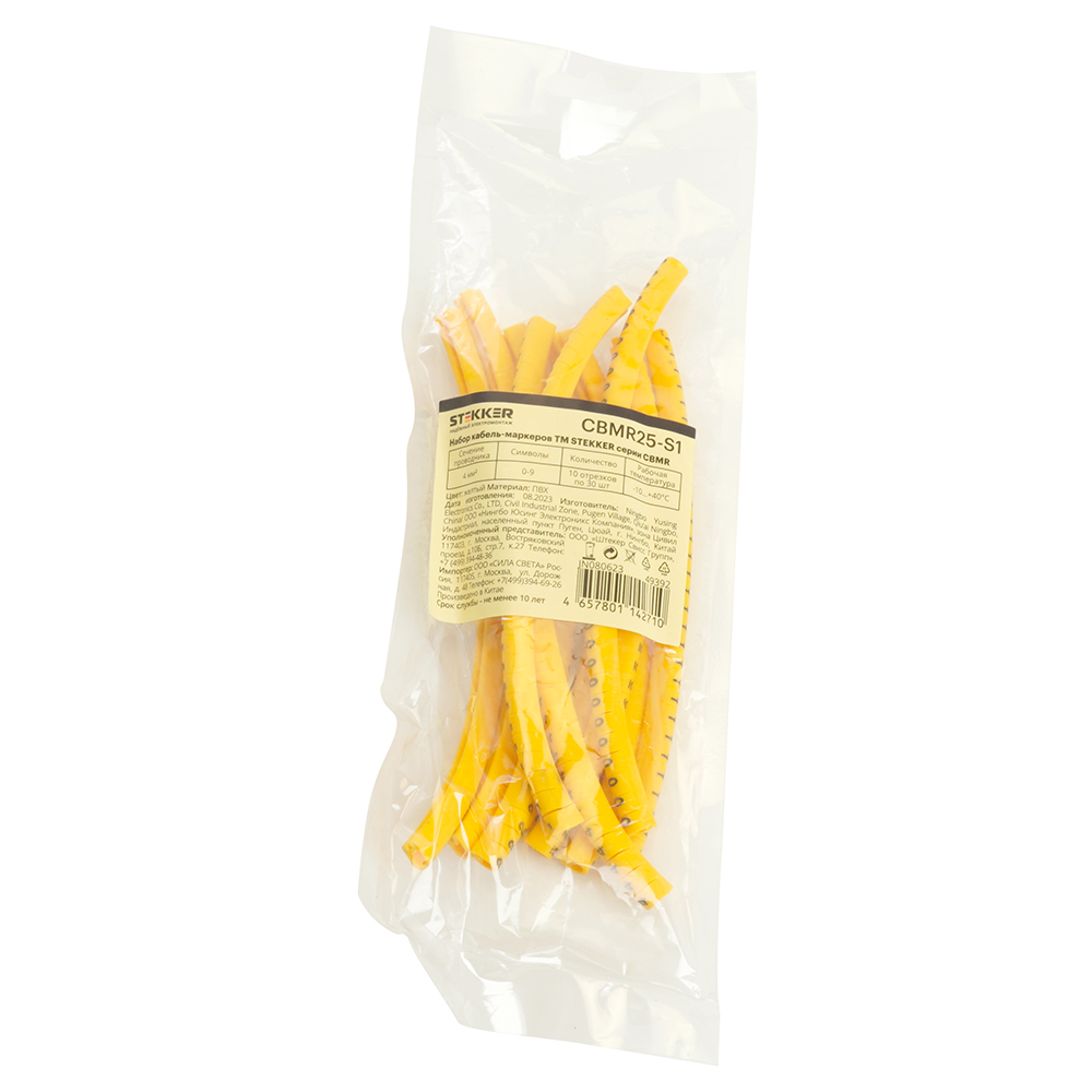 Набор кабель-маркеров DIY электромонтажный STEKKER CBMR25-S1, , желтый, материал - ПВХ, размер 15*98мм, максимальный диаметр пучка - мм, нагрузка - кг, диапазон рабочих температур -10°C - +40°C, рекомендуемая температура хранениня