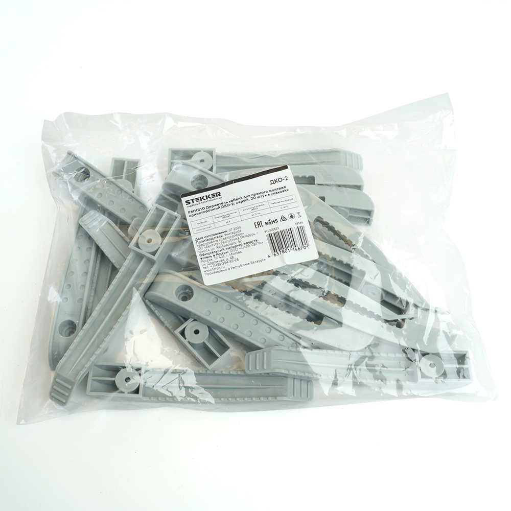 Держатель кабеля для прямого монтажа односторонний ДКО-2 STEKKER PMHR1G, серый (20 шт в упаковке)