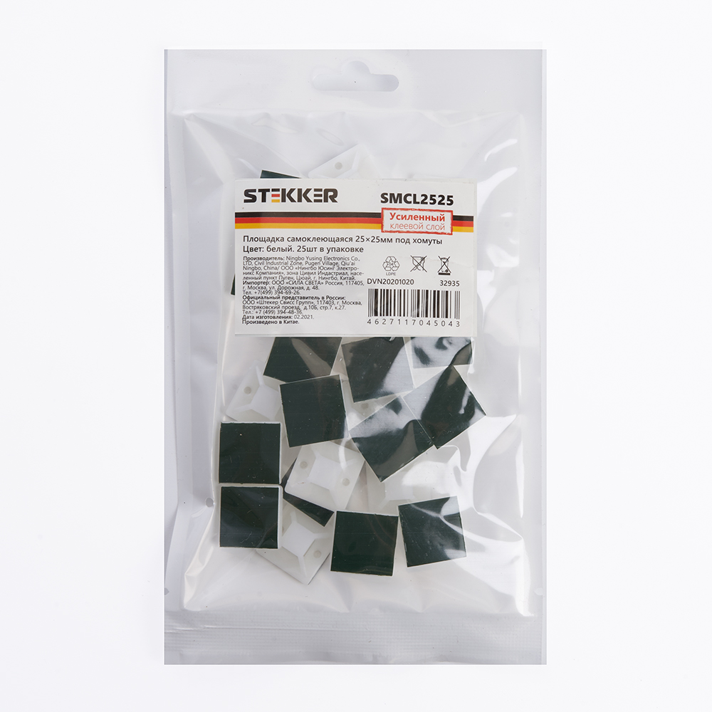 Площадка самоклеющаяся STEKKER SMCL2525 25*25 мм под хомуты белый (25шт в упак)