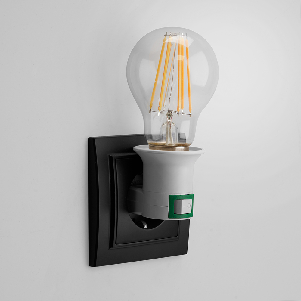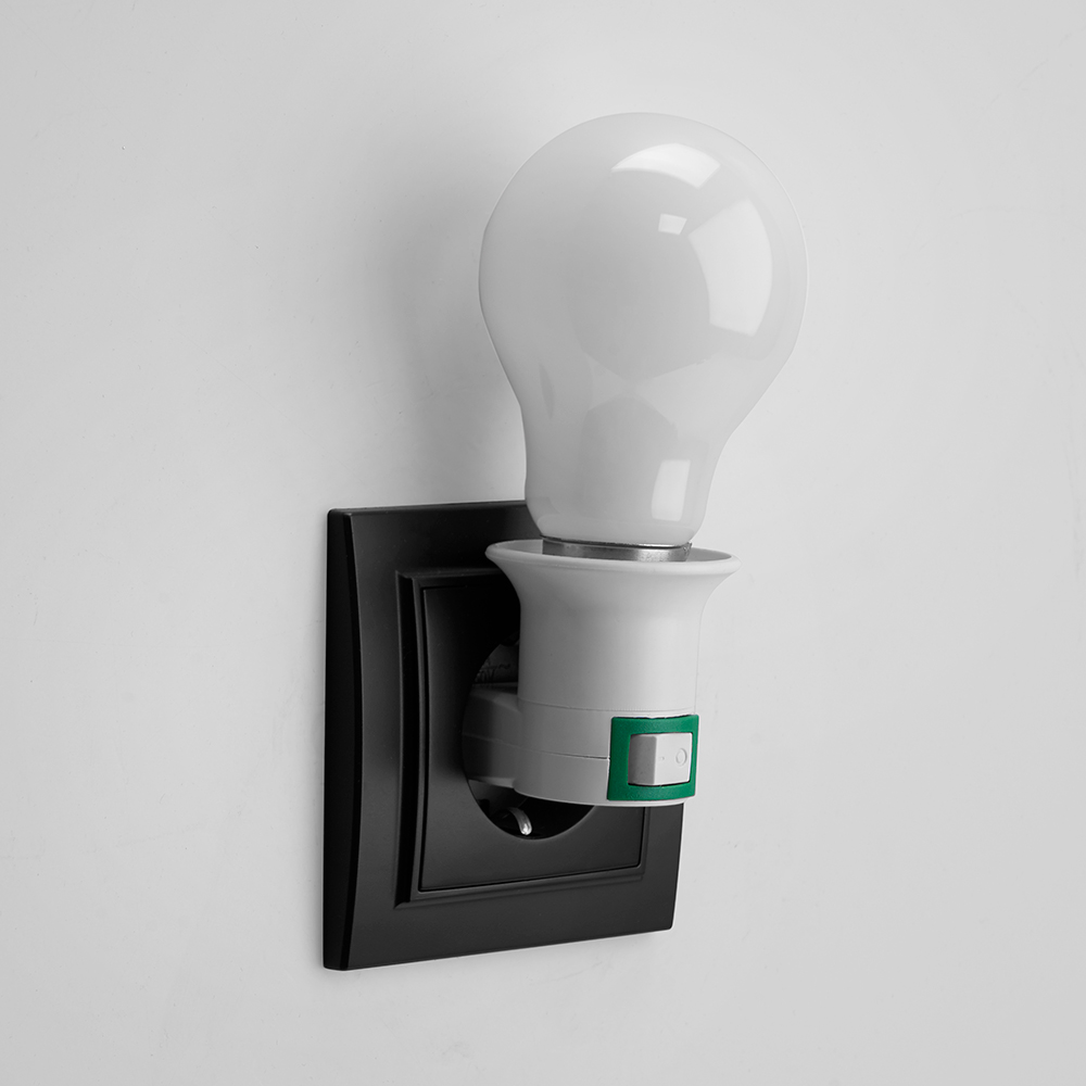 LH61 Патрон-переходник с E27 на розетку (для лампы E27), с выключ., 250V, пластик, белый, 39*64мм