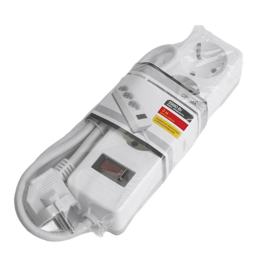 HM20-31-03 Сетевой фильтр 3-местный с/з 3x1мм2, 3 м, 230В, 13А, серия Optima, белый