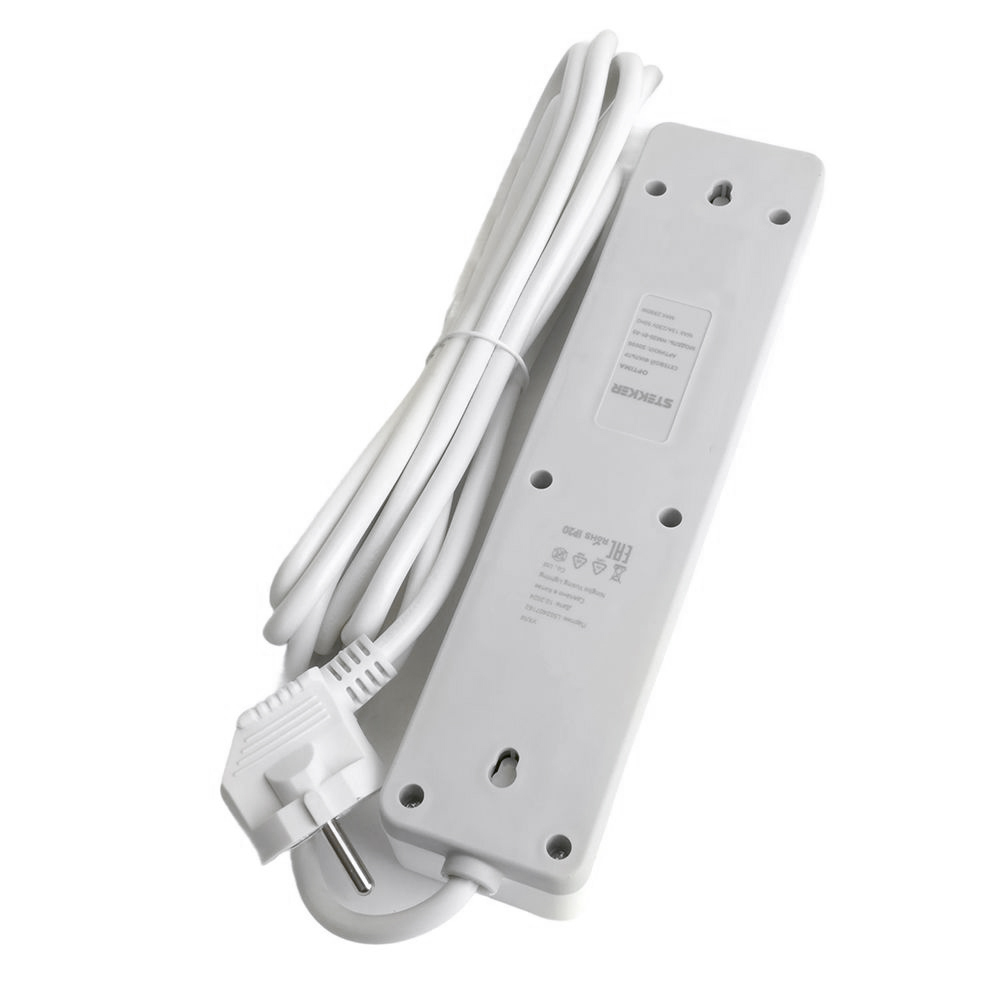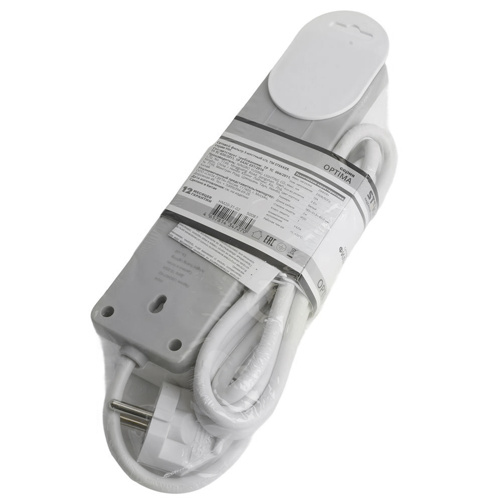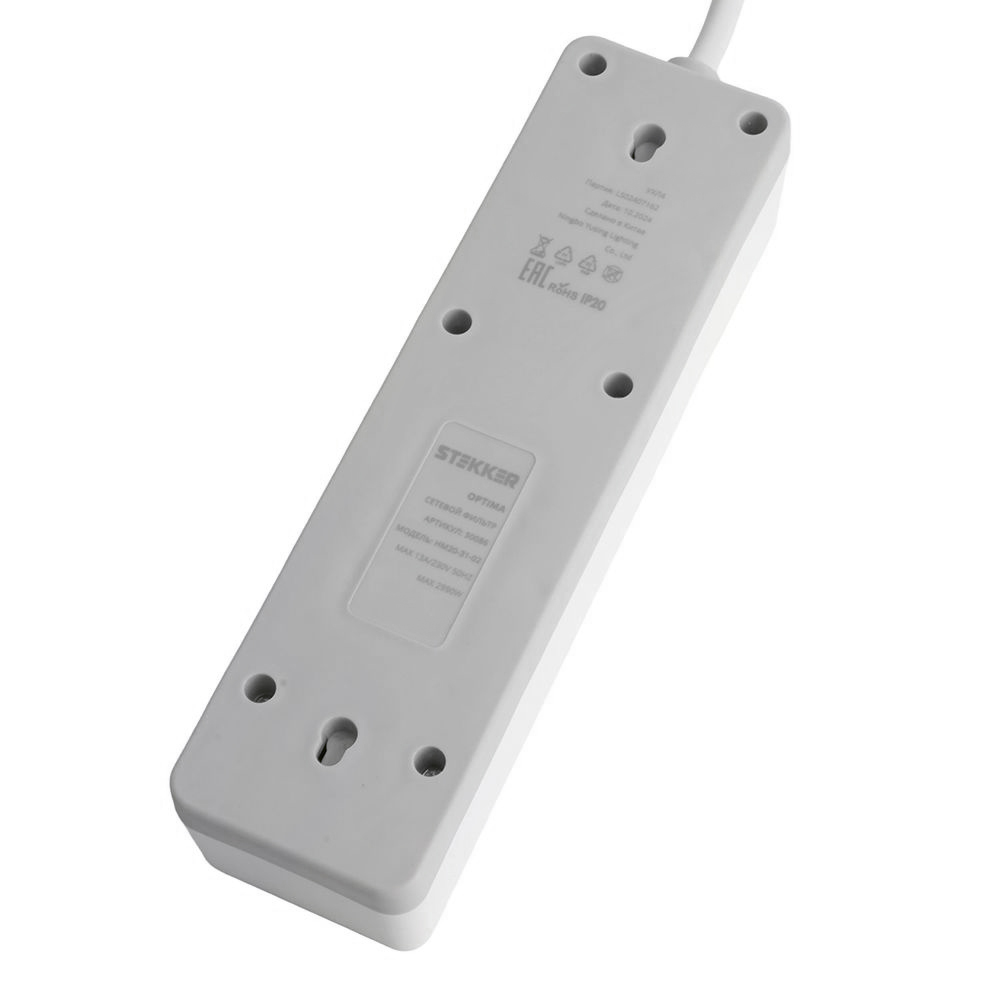 Сетевой фильтр 3-местный с/з STEKKER HM20-31-03 3x1мм2, 3 м, 250В, 16А, серия Optima, белый