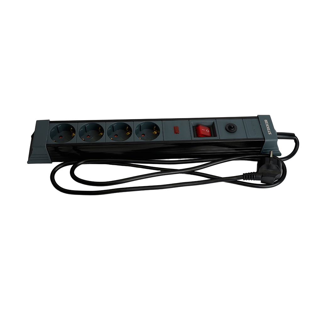 Сетевой фильтр 4-местный с/з STEKKER 3x1мм2, 3 м, 250В, 16А, серия Techno, HM22-41-03, черный