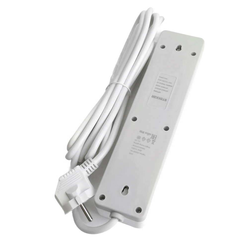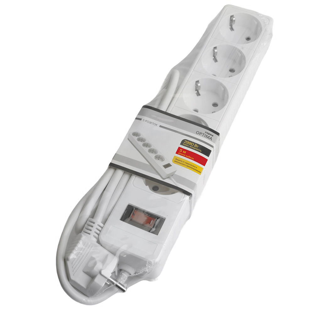 Сетевой фильтр 4-местный с/з STEKKER HM20-41-05 3x1мм2, 5 м, серия Optima, белый