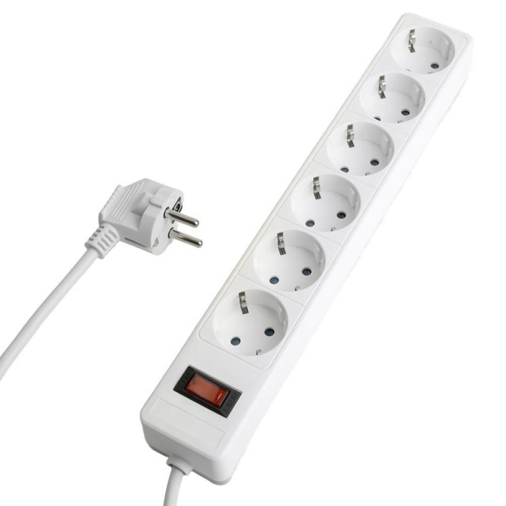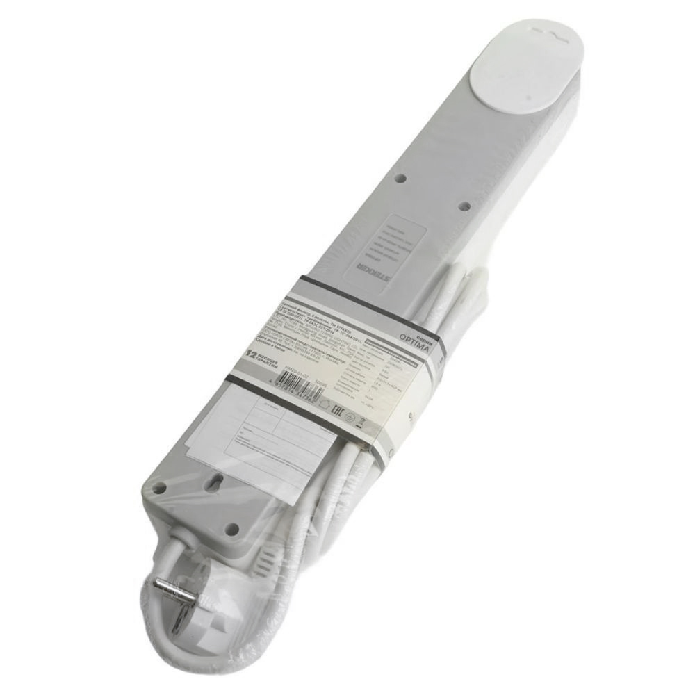 Сетевой фильтр 6-местный с/з STEKKER HM20-61-02 3x1мм2, 1,8 м, серия Optima, белый