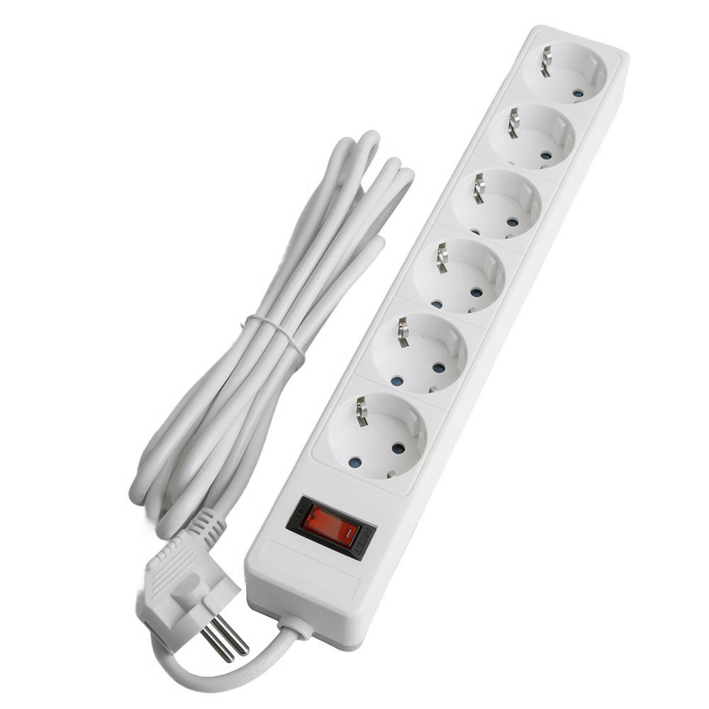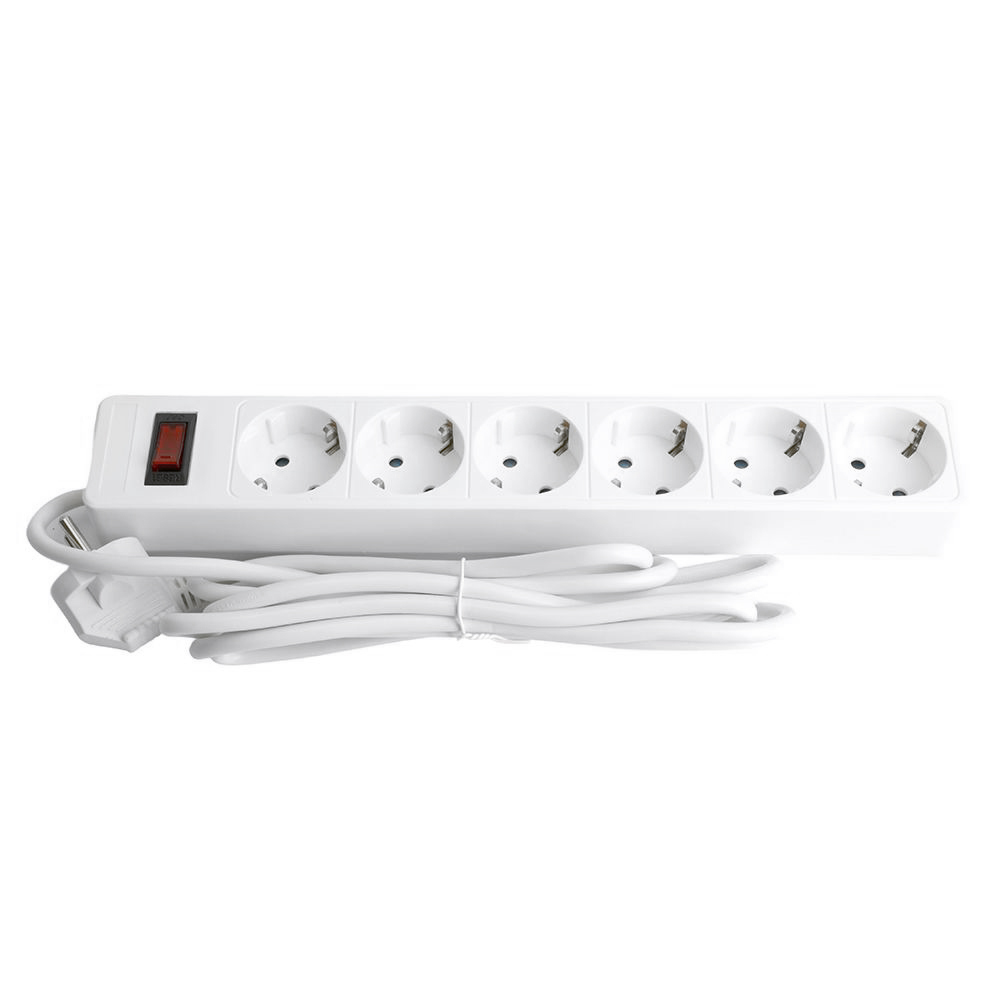 Сетевой фильтр 6-местный с/з STEKKER HM20-61-03 3x1мм2, 3 м, серия Optima, белый