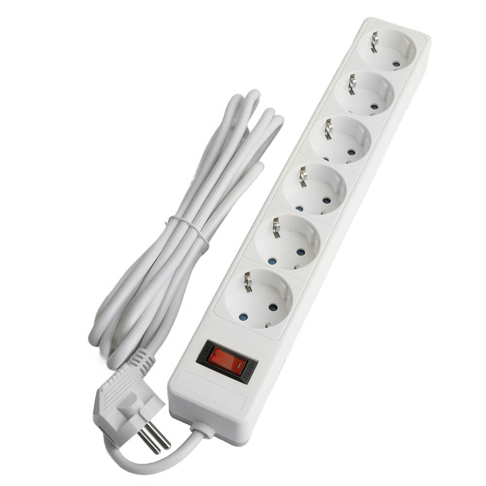 Сетевой фильтр 6-местный с/з STEKKER HM20-61-053x1мм2, 5 м, серия Optima, белый