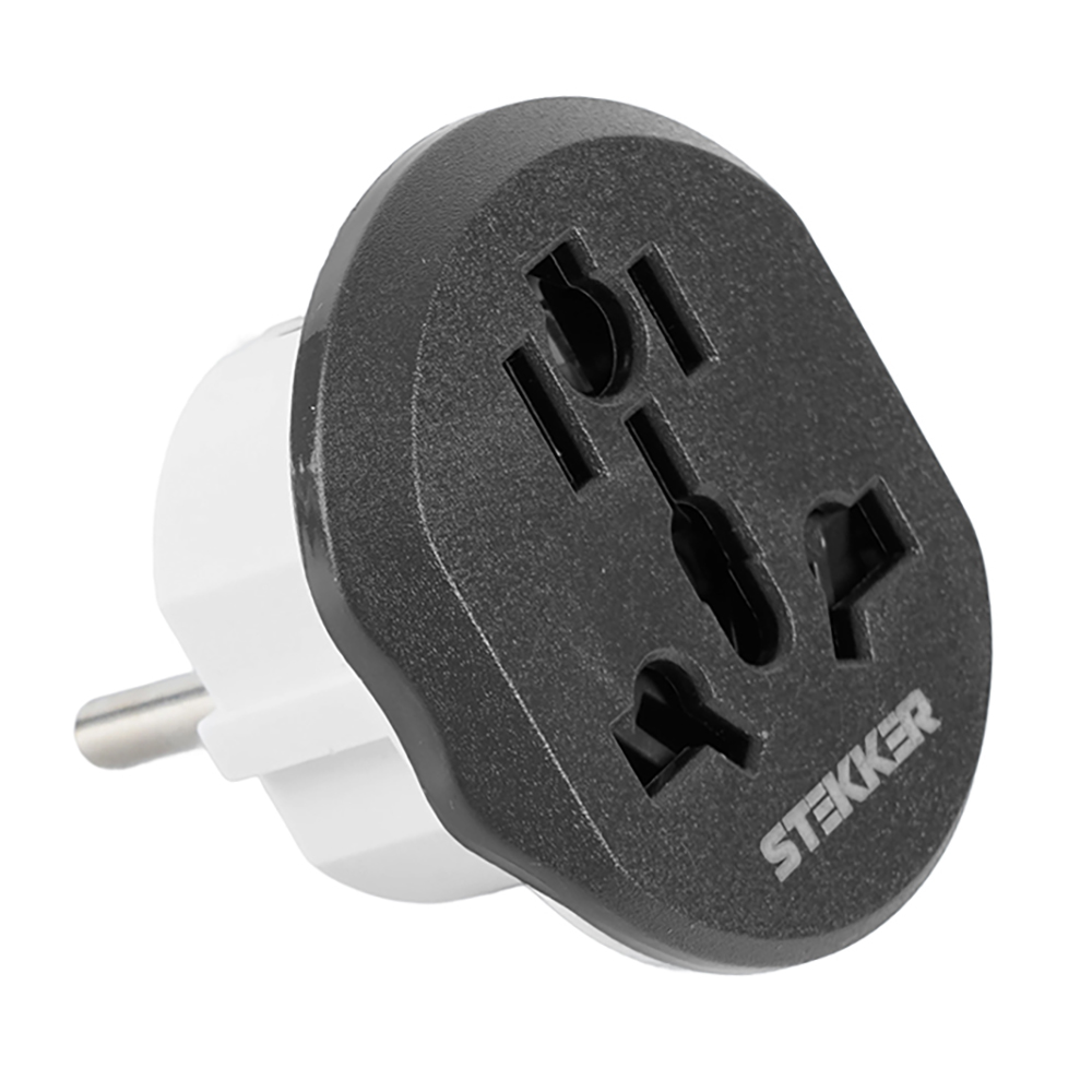 Сетевой переходник STEKKER ADP16-06-20 (Тип гнезда: Универсальный переходник (Германия, Англия, Италия, Франция, Япония, США, Китай, Австралия, Южная Африка, Чили)) с заземлением, количество присоединяемых устройств 1, номинальное напряжение 250В, номинальный ток 16А, материал поликарбонат PC, цвет белый+серый, IP20