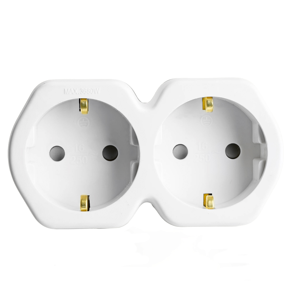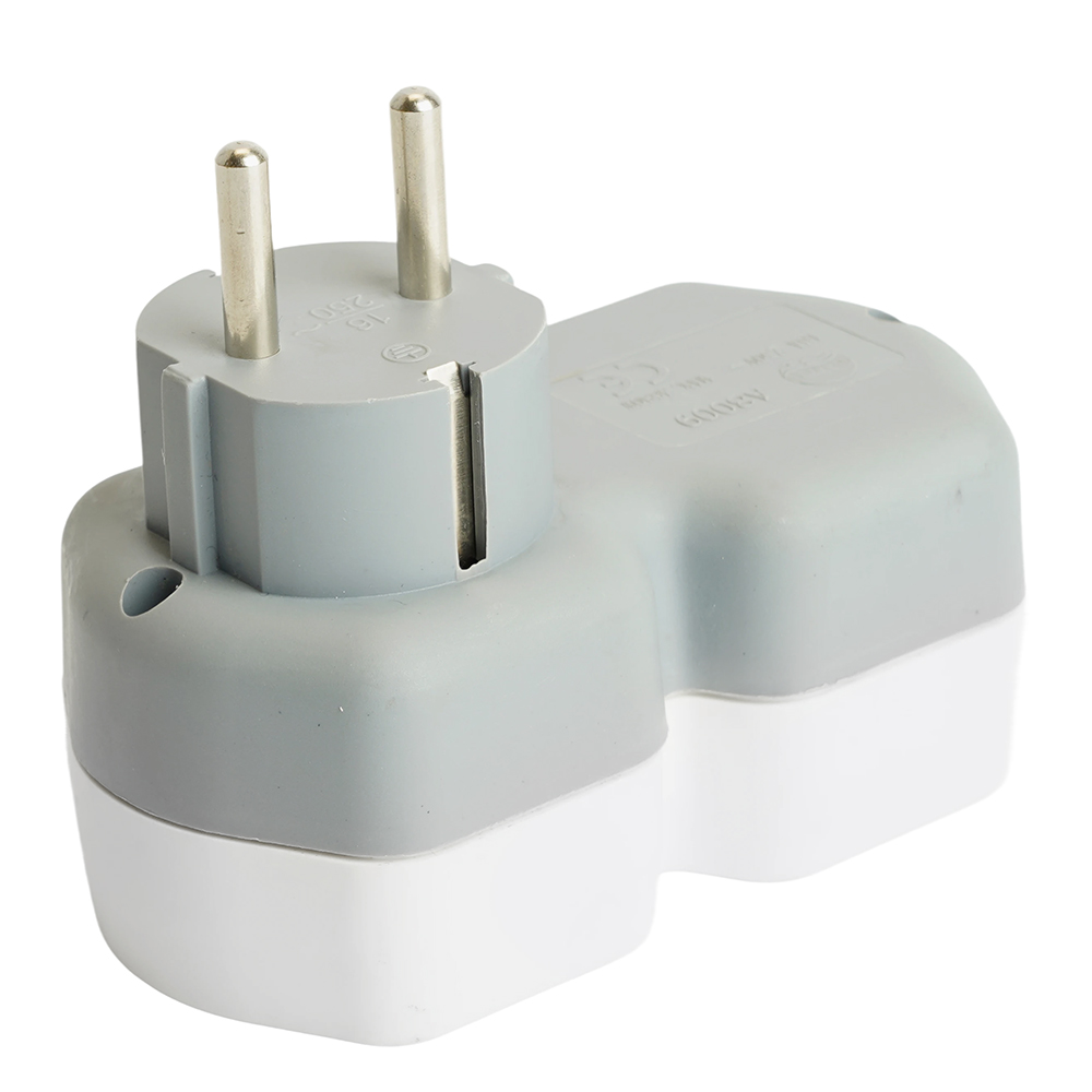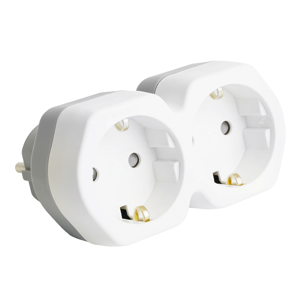 Сетевой разветвитель STEKKER ADP16-12-20 с заземлением, количество присоединяемых устройств 2, номинальное напряжение 250В, номинальный ток 16А, материал пластик, цвет белый+серый, IP20
