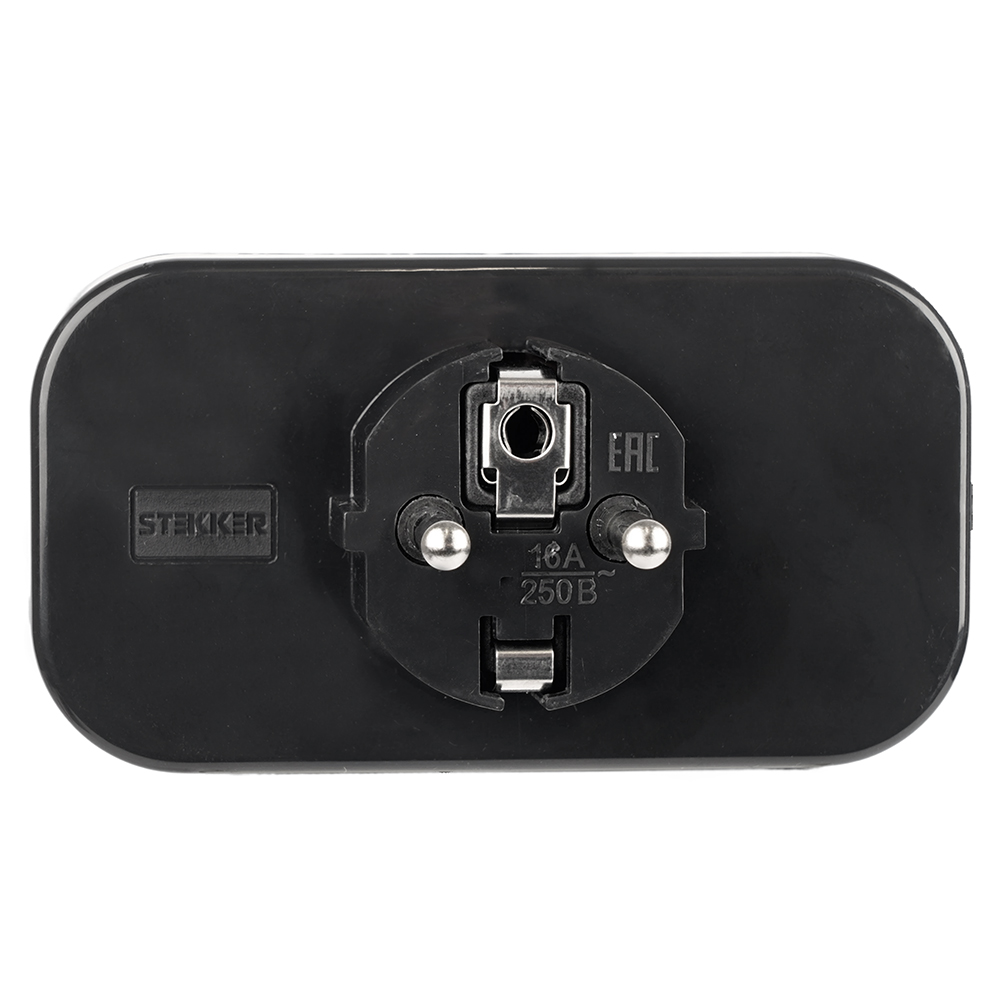 Сетевой разветвитель STEKKER ADP16-22-20 (ADP16-22-20) с заземлением, количество присоединяемых устройств 2, номинальное напряжение 250В, номинальный ток 16А, материал ABS пластик, латунь, нержавеющая сталь, цвет черный, IP20