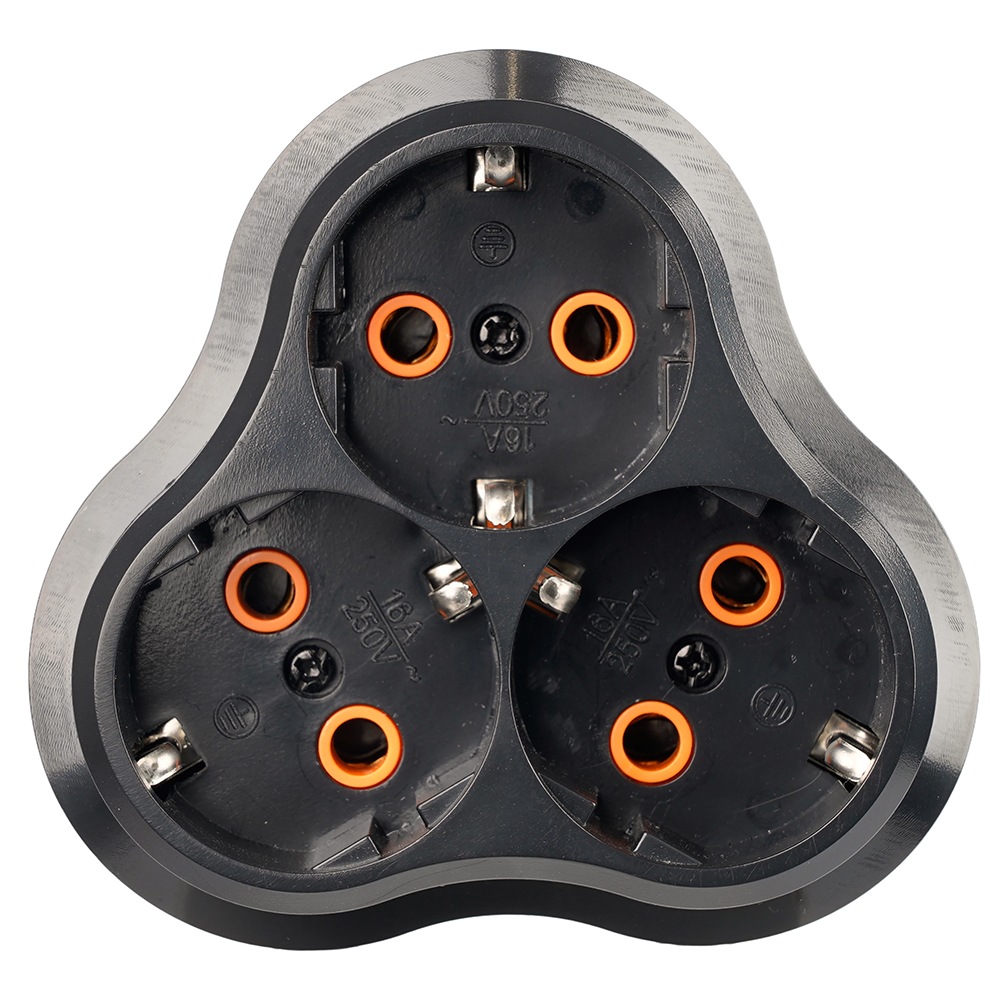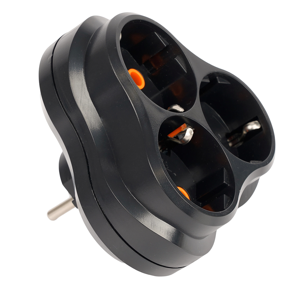 Сетевой разветвитель STEKKER ADP16-23-21 (ADP16-23-21) с заземлением, количество присоединяемых устройств 3, номинальное напряжение 250В, номинальный ток 16А, материал ABS пластик, латунь, нержавеющая сталь, цвет черный, IP20