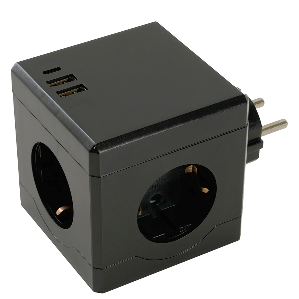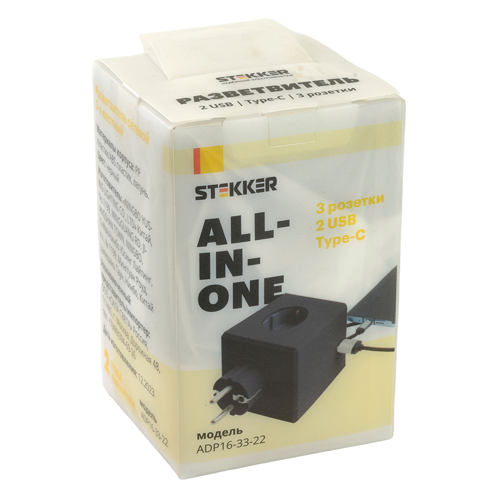 Сетевой разветвитель STEKKER black (ADP16-33-21) с заземлением, количество присоединяемых устройств 6, номинальное напряжение 250В, номинальный ток 16А, материал ABS пластик, латунь, нержавеющая сталь, цвет черный, IP20
