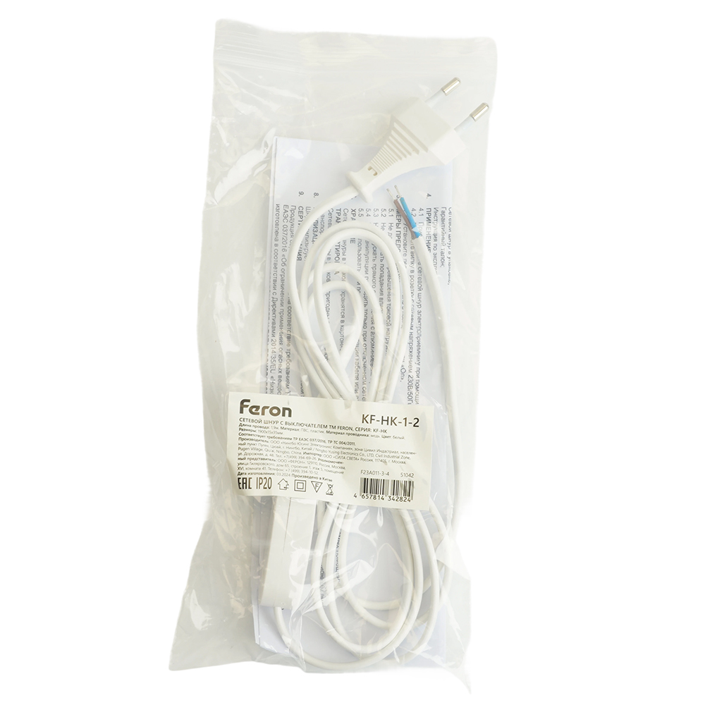 Сетевой шнур с выключателем, 230V 1,9м белый, KF-HK-1-2