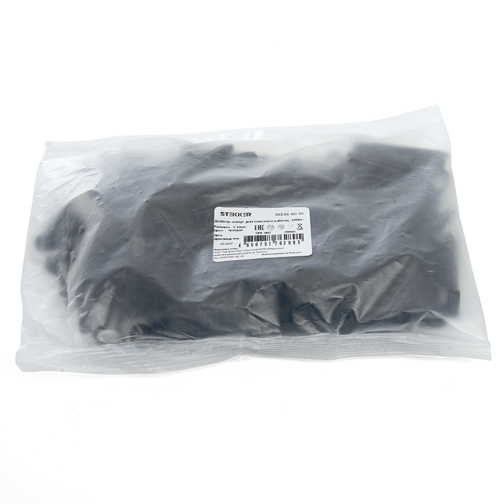 Хомут электромонтажный STEKKER DCL01-05-10, одноразовый, черный, материал - полипропилен, максимальный диаметр пучка - 25мм, нагрузка - -кг, диапазон рабочих температур -40°C - +85°C, рекомендуемая температура хранениня +5°C - +25°C