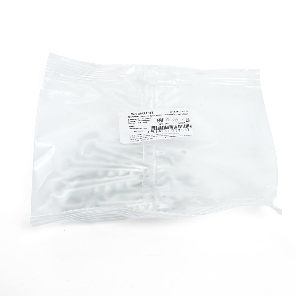 Дюбель-хомут для плоского кабеля (5-10мм), STEKKER DCL01-5-10, полипропилен, белый (DIY упаковка 10шт.)