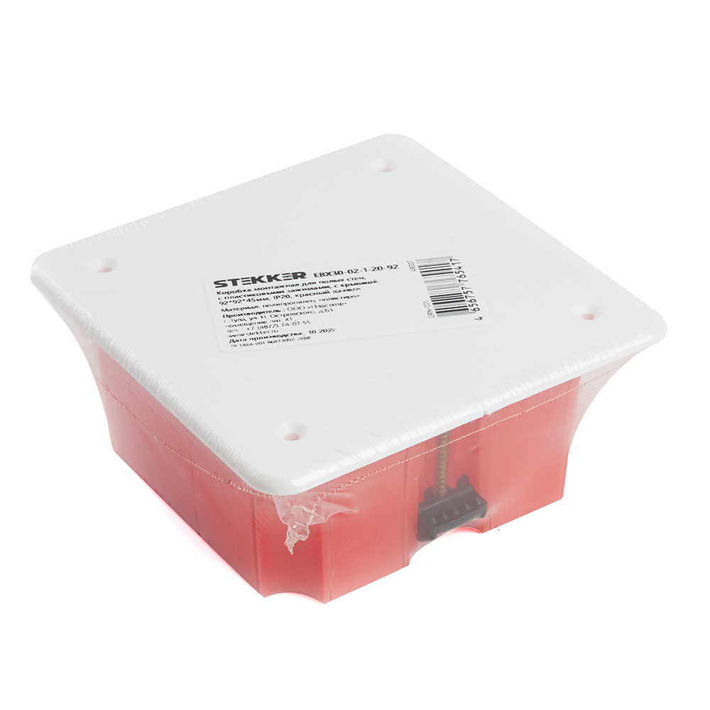 Коробка монтажная STEKKER EBX30-02-1-20-92, количество вводов: -, полипропилен, полистирол, цвет красный, размер 92*92*45мм.