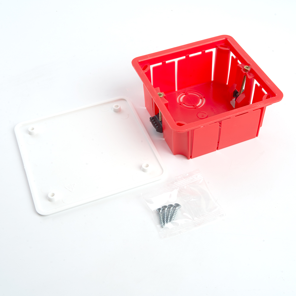 Коробка монтажная для полых стен, с пластиковыми зажимами, с крышкой, 92*92*45мм STEKKER EBX30-02-1-20-92, красный