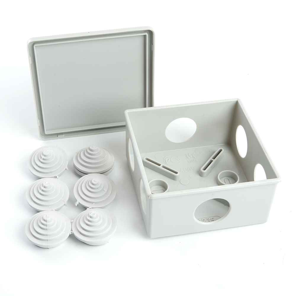 Распределительная коробка STEKKER EBX10-34-44, количество вводов: 6, полистирол, цвет светло-серый, размер 85*85*40мм.