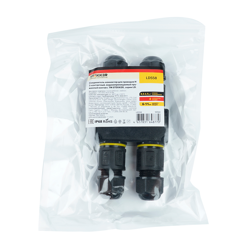 Соединитель-коннектор для проводов H 3-контактный LD558 STEKKER, водонепрониц. пружинный контакт