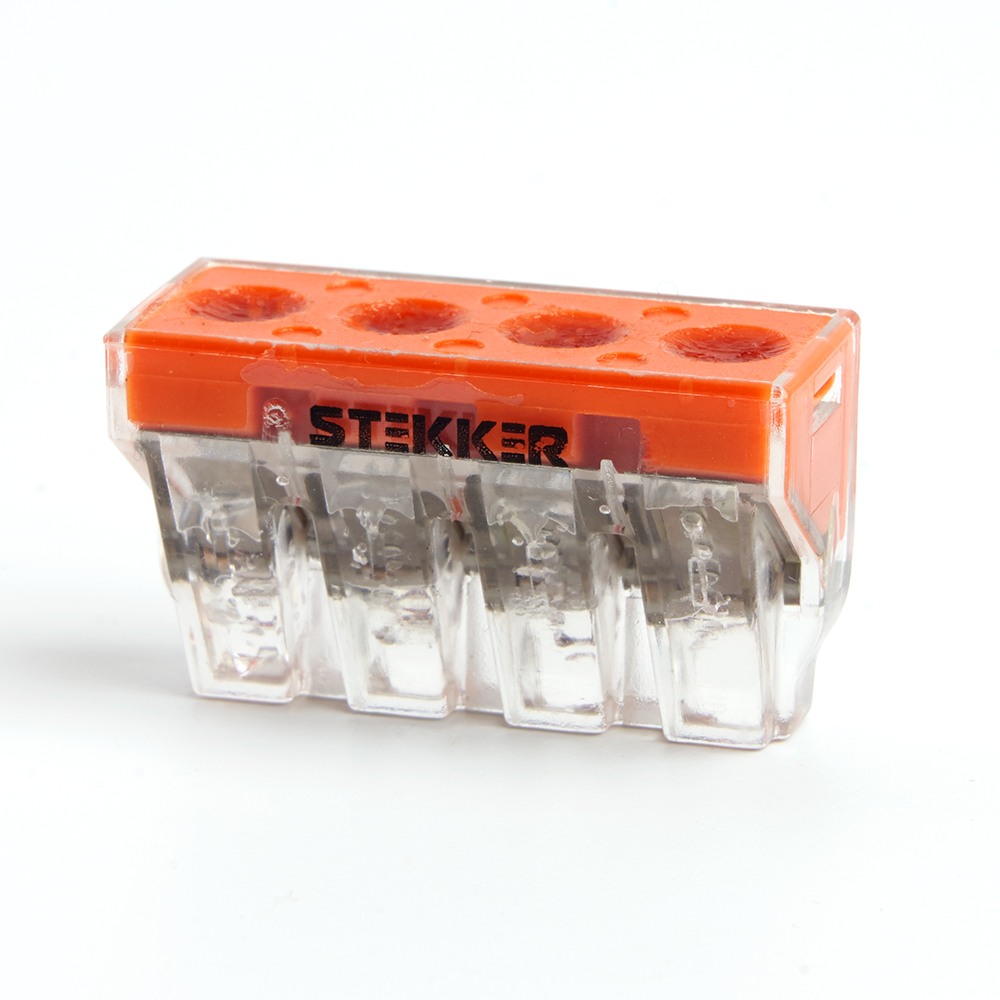Клемма монтажная 4-проводная STEKKER для 1-жильного проводника (с пастой), LD773-174-1